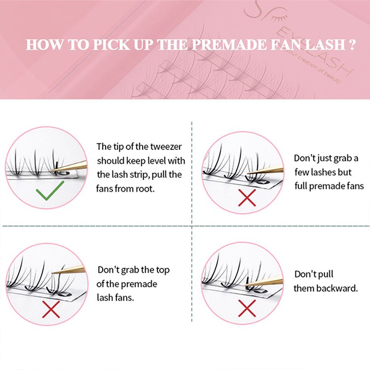 Виготовлені з надлегких волокон PBT преміум-класу, ці готові тонкі віяла мають тонку рівну основу, яка легко кріпиться до природних вій, не додаючи зайвої ваги. Чи то для повсякденного носіння, чи для ефектного макіяжу, вони забезпечують легкий розмір і тривалий комфорт.